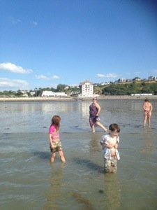 I was apprehensive staying somewhere new on the first night, but the location suited us and when we got here it was a real wow. About a 5 minute walk to e beach, once we had set up our base camp we decided to go for a quick paddle. The quick paddle rapidly turned into a full on swim, with Fraser ending up fully clothed in the warm sea before stripping naked to chase his sister around the bay. The day trippers and fishermen were all returning with their catches of shell fish and fish and landing their boats on the beach. We resolved to find some fresh seafood for a bbq tomorrow night and an after dinner beach trip and ice cream is on the cards if the over tired and excited children have a good sleep.