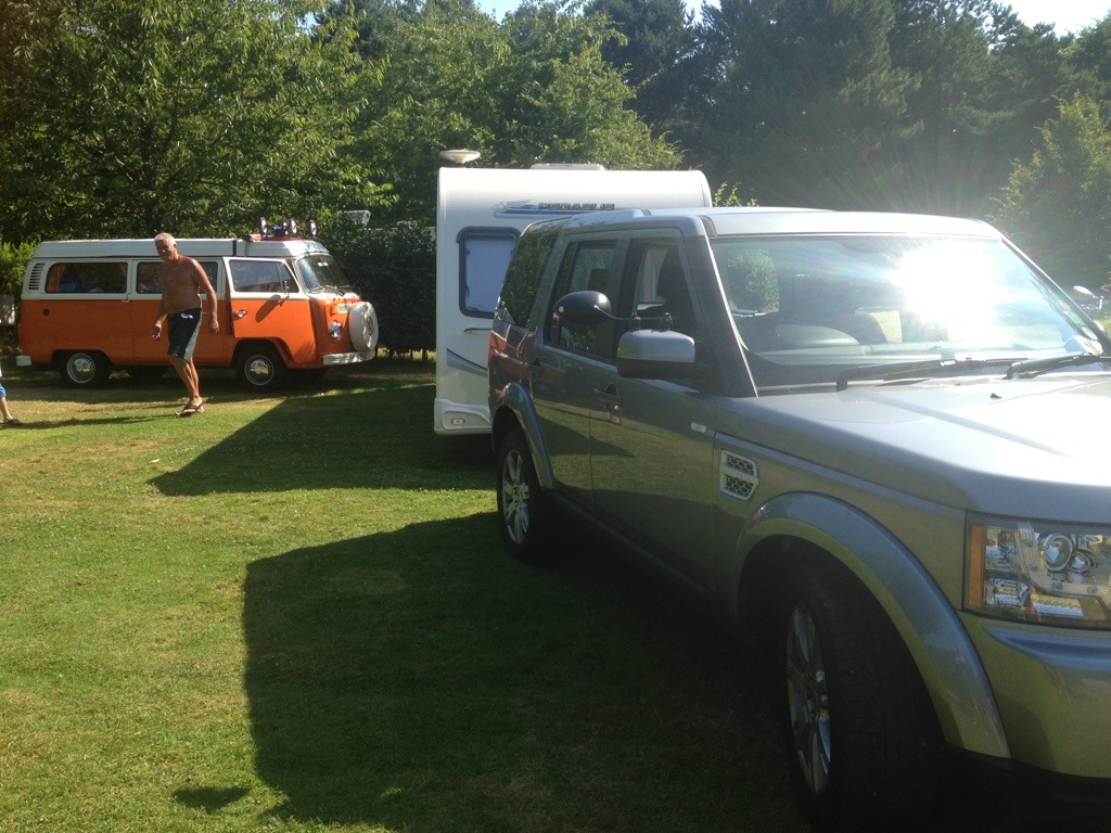 We came via the supermarket in the sweltering heat. Dad had to pop out later and noticed on the thermometer that it was up to 38 degrees and the Tarmac was melting. Meanwhile I was having my own issues with freckle. The campsite took a more laid back approach to pitching, on arrival you were simply asked to find a pitch and let them know where you were staying. The setting couldn’t be more beautiful, with a few static vans dotted in with quite a few safari tents and yurts. But the pitches weren’t clearly marked so it made it difficult to know where was available. Once we decided where to camp we set up, I levelled freckle, then the pitch next door became available, and dad decided that we’d be better on there. Or pitch is in amongst sycamore trees, right beside a huge lake (with a low level fence separating us). With the new arrangement of dads van I needed to move the van and it just wouldn’t start. I’m assuming that the starter motor let me down again, but the freckle firmly refused to start! After rolling around on the forrest floor and a good squirt of wd40 on the connection, I was still getting no joy, I have to admit to calling freckle a name! Ultimately I got her gaming but not without a lot of swear, head scratching and a bit of a push from daddy!