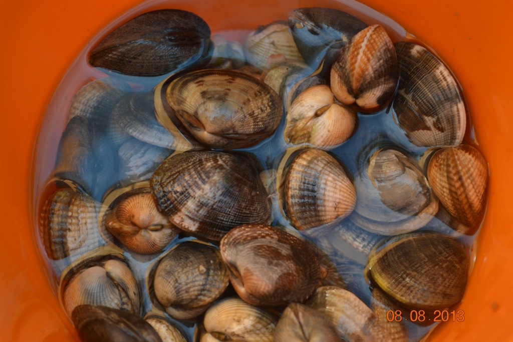 We got showered and dressed and headed down to the beach to collect some more seafood with our proper rakes, it was much easier with the rake and penny caught 19 crabs…. The tide was out firer this time and there was a route over to the mussels. I was also struck by how differently people were foraging…. Some favoured the mussels, whilst others went for razor clams or ordinary clams that we nestled in little clumps under the black sand. Once you found one you could be sure to find 5 or 6 more.