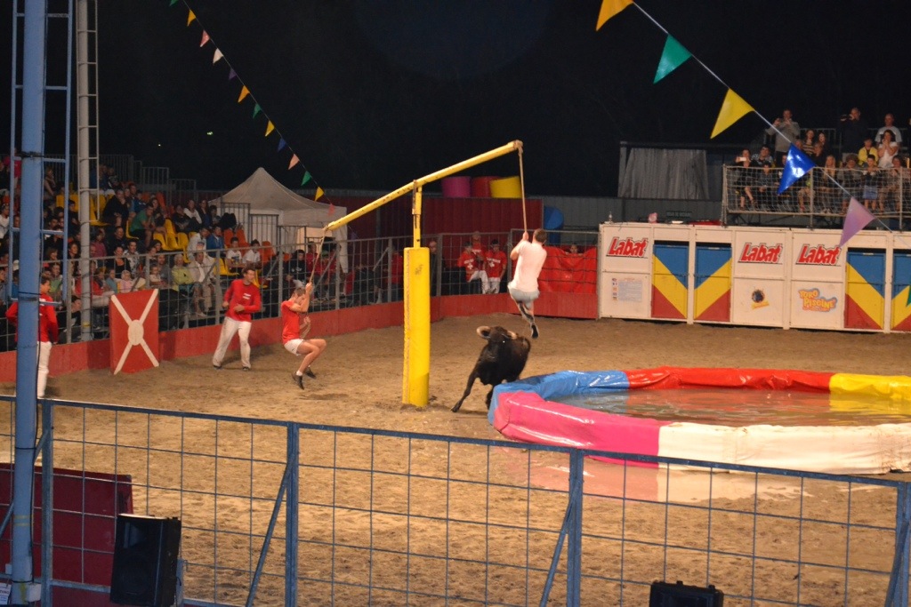 We went to the toro piscine…. Which I think means bull in the swimming pool! I’d been to a bull fight years ago down here, but this was nothing like it! Basically there was an arena, bulls, and then a load of 20 something lads who took part in all sorts of silly games whilst trying to avoid getting got by a bull. There was also a donkey derby and a children’s race. It was one of those things that had to be seen to be believed and would never be legal in the uk. I must also add that there was no killing of bulls just playing with them, and they seemed to very well know the score. It ended really late, and the children were a happy mixture between exhausted and excited…. Not a peep was heard from them until the morning!