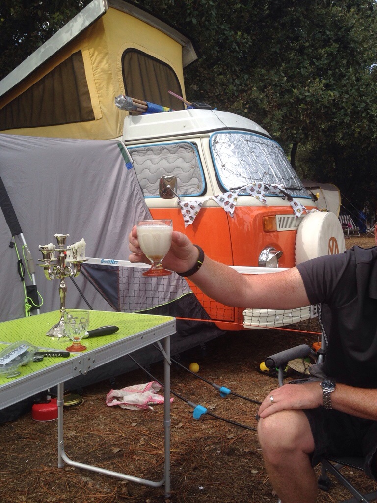 I fixed the awning (yes mum and mil…. It involved sewing!!!! SArAh the sewing goddess!!!! Kaboom!) and we had a sort out whilst the children were at the park. We swapped new engine stories with another mad Vw owner and got ready for a bike ride.