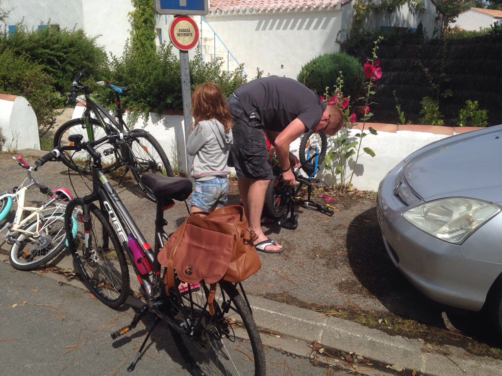 Fraser was desperate to go on his bike on his own today rather than the tag along, so we let him. We ended up on a 5 mile mile round trip along main roads. He confidently informed stew it was his first Time doing a round about on his own…. And by the end of the ride he’d done 4! Our aim was to get to a windmill! We never did get there! We went through some of the most beautiful old French houses and gites, a Forrest and couple of towns… If Id been a windmill it would have lived there!! It was really blowy. I’m clearly not the only one who thought this as hundreds of windsurfers had the same idea!!