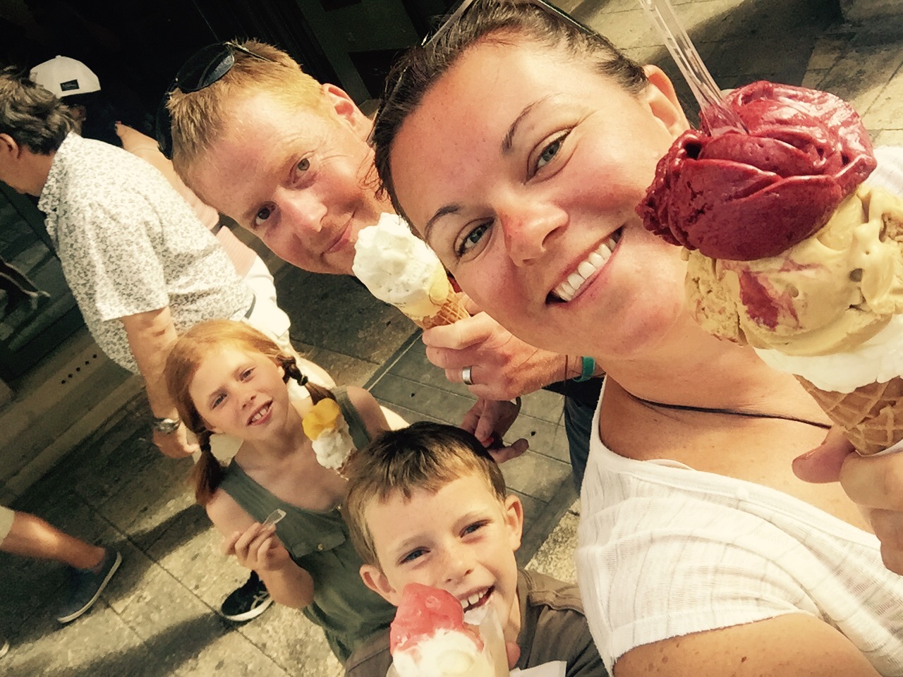We headed back into the main city and parked our bikes after meandering for about 10KM. We walked down to the other side of the harbour and looked at the stalls and found an ice-cream shop which was recommended to us. Well Miranda… you were right! Whilst we were in the long queue we decided to have ice cream for tea and each had 3 scoops! they had every flavour imaginable and I really thought that Penny might burst with excitement! It was totally delicious! I had black current sorbet, with a salted caramel and a white chocolate combination!