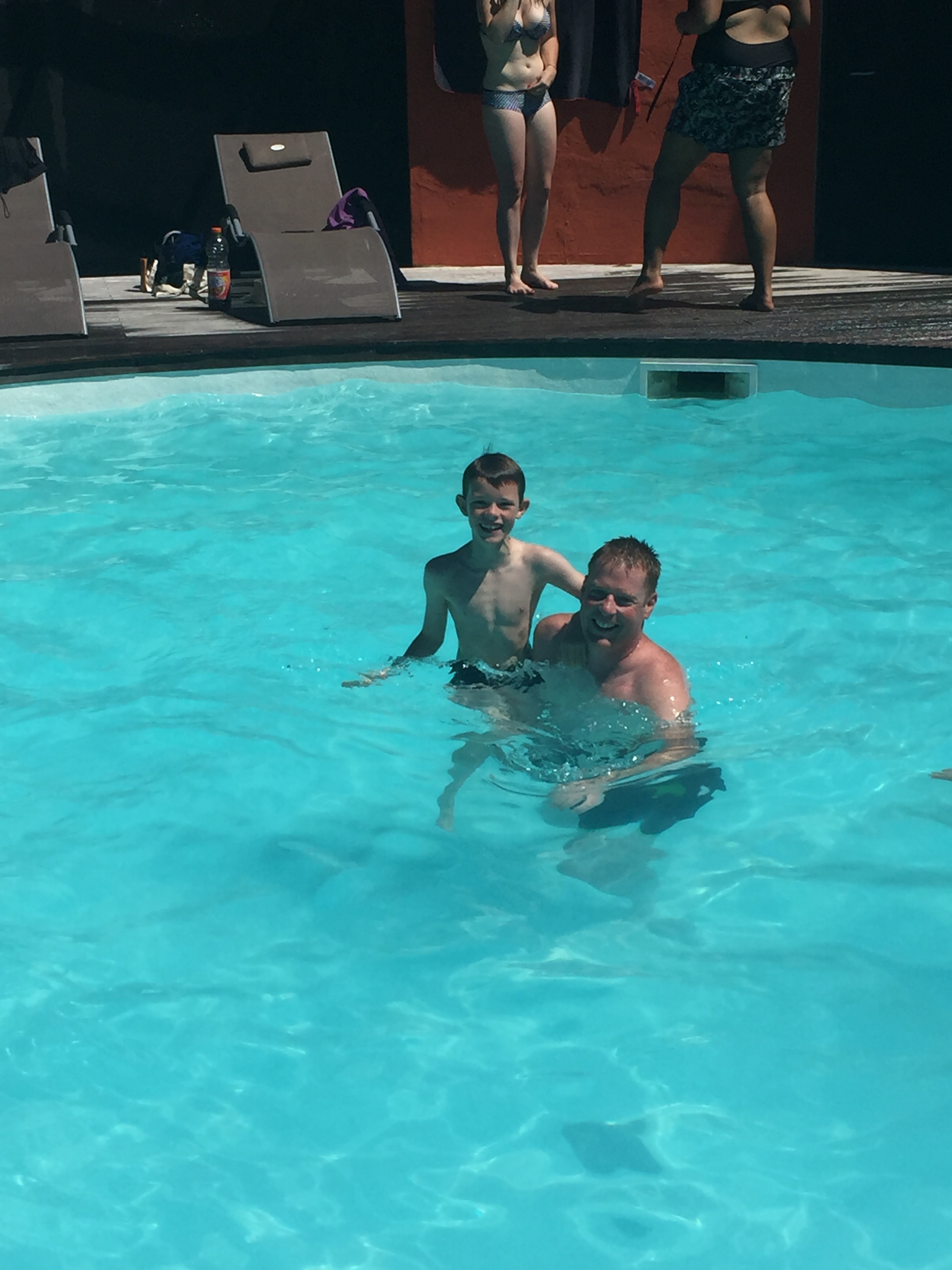 Well… today started with a run for stew and I! I know!  Im sure it won’t last but its flat, beautiful and not too hot!  The children went and bought the bread and we had the usual breakfast.  I washed up whilst Stew took the children to the pool and then I joined them for the last few mins.
