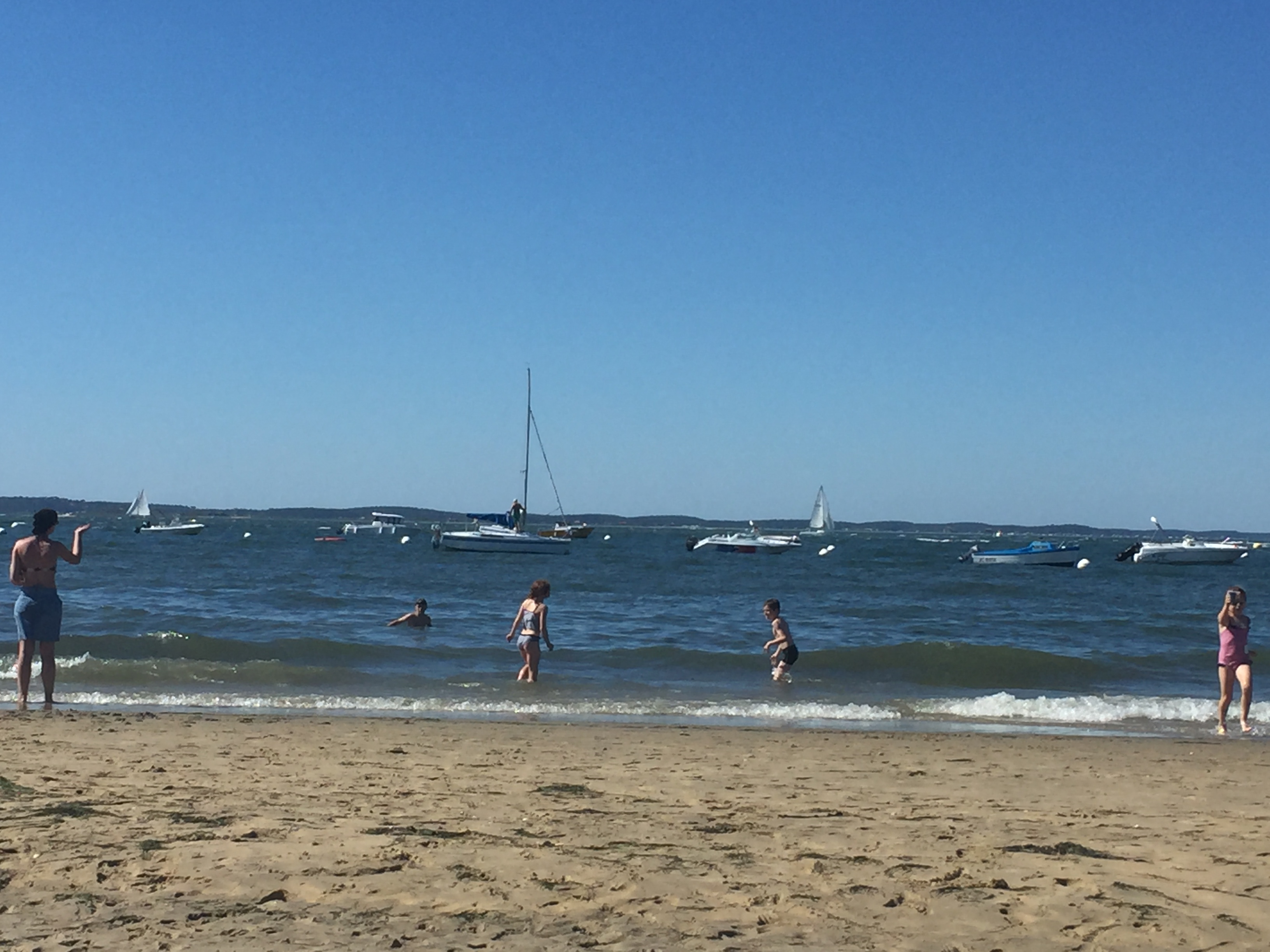 We dried off and headed for our ice-cream,  There is nothing cheap about Archachon, including the icecream but boy did it taste good!! (15 quid for 4 ice creams!!!!!! ) needless to say the glass of wine I thought that I might fancy with my ice-cream rapidly became some warm wine back at camp!! We had a little walk around the town which had a beautiful church and then headed back.  A quick dunk in the pool was well timed after our ride back up a huge hill and we cooled off.  We had some pasta as the children were getting restless and then started to settle them for bed.  They were total monkeys but we all went to sleep eventually!  It was so so hot in our van that even our fan did little to move the air around.  Stew and I sleep in the top and slept all night with the sides open for air.