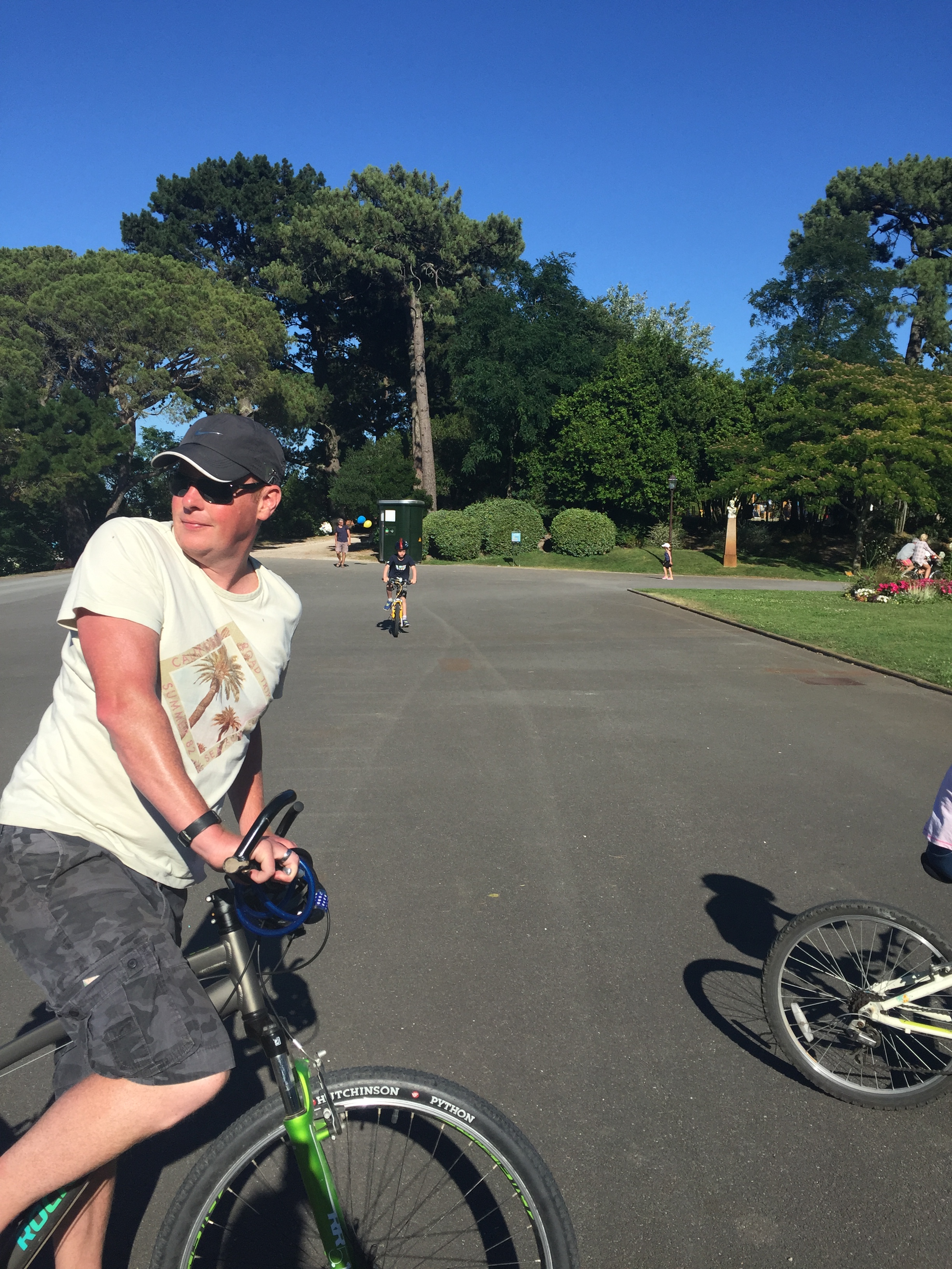 After a few nights a bit away from everywhere, tonight was dinner out night. We popped on the bikes and cycled to a little “plage”, L’amelie. A lovely little row of shops and restaurants, not far from camp, right next to the beach and the crashing waves of the Atlantic. Sarah and I had Moules (of course) and the children had another good kids meal. I followed up by being a fat boy with a cafe gourmand – the best pudding ever FACT (another thanks to Andy and Emilie Heissig on that one)!!!!!! Luckily (not really) I had two willing small people who wanted to share my four small beautiful puddings!