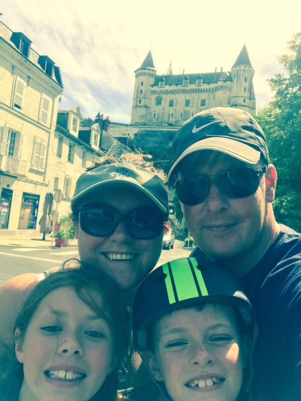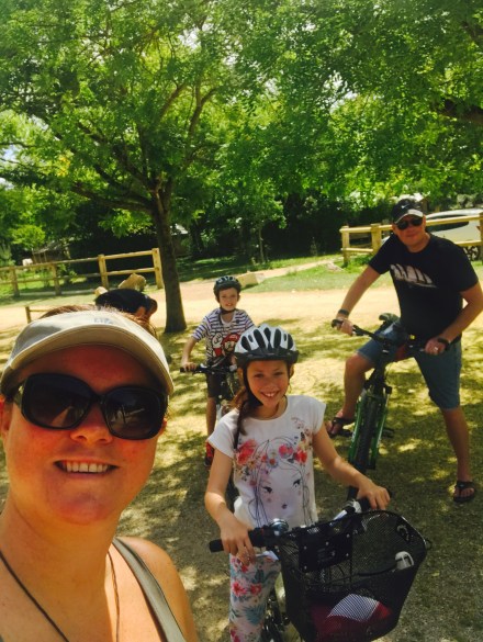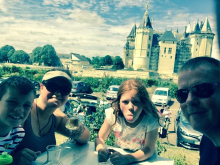 We had decided to try out my back on a long bike ride… and loaded up the bikes, smothered us in suncream and headed off down the huge hill to find the town. Directly out the site is a huge hill down to the river, and along the river is a cycle path, and it links into the Loire cycle network, though further investigation would have been good as we ended up a bit lost! We had a pit stop at Decathlon to buy the children drink bottles and new cycle hats as their heads have grown!