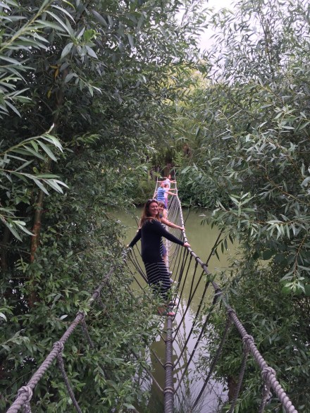 Half way along a rope bridge over the lake we read the sign which said teenagers and adults only… as we realised that the children were half way across the river!