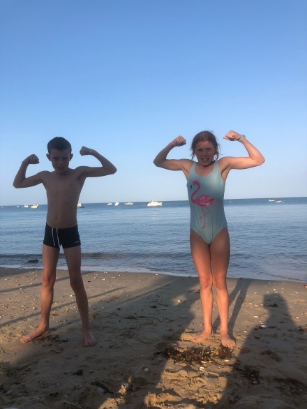 The children were ravenous, and had a feast of meat on the BBQ, before we all went to the beach for a play in the sea. The sea was like a pond and will be perfect for getting out the paddle boards tomorrow.