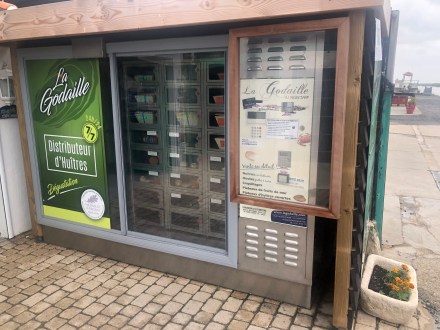We knew the vendee wouldn’t disappoint and it brightened up as we arrived. We went past as Fraser reminded us “where Joel nearly died…. of hunger!” And stopped to buy some oysters! I was lost for words when I saw there was an oyster vending machine!!!! So accessible!