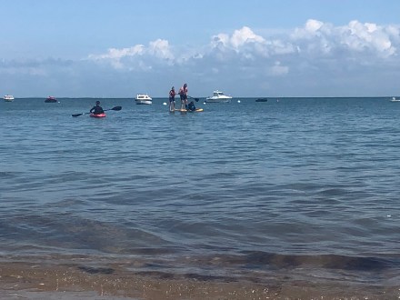 Back and into the sea for some paddle boarding to hone our skills before getting ready to head out to the local restaurant on site for a great meal.