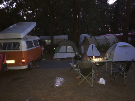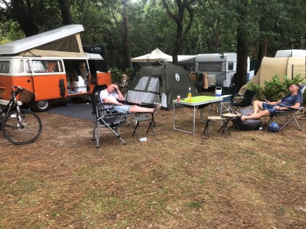 After hitting our pits last night at 10ish with the intention to read, and stew promptly falling asleep within 3 seconds…. I got to experience what sounded like a fairly empty karaoke bar until 1am. What I loved the most was as we are on the pitch next to the loos, was how the sound was stopped by said wall and filled the campervan with passionate renditions of French Karaoke classics… with long pauses of the waiting for one of the 3 people to pick another song music in between! I’ve been in quieter night clubs! At least it stopped at 1am!